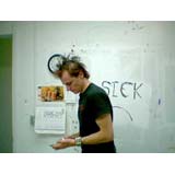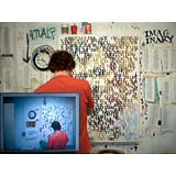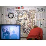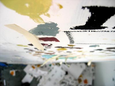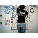 In a heartbeat, this painting is composed of the first page of text from, On The Road by Jack Kerouac. The letters themselves are painted in colors that will make a portrait of Kerouac when seen at a distance. This painting tries to blur the line between "reading" this piece as literature or something to take in visually. In fact, it is both.