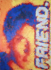 "Friend." is made up of a mosaic consisting of approx: 2220 separate silkscreen prints. The prints are of my best friend during my time at RMCAD - Terry Campbell. Four different face poses, thirty two passes of different colors, most likely 100+ hours of painting. I went through 1 gallon of gesso, 1 gallon of titanium white, one gallon of Golden Silkscreen medium and a lot of jars of color, to say the least.