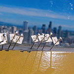 Pins: Seattle took an extended weekend of traveling to photograph. I traved from Denver, Colorado to Seattle, Washington and back in a small car. I stayed in a hostel once in Seattle and napped along the road the rest of the way. About twenty-five sculptures were placed in this time.