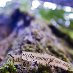 The various word-play in the sculptures themslves wasn't ever thought out ahead of time: A spot was picked if I felt a picture should be taken there. The word play was figured out in the moment, from the few different cutouts I had. The materials I had to create these sculptures wasn't exhaustive; it was only a plastic baggie or two of pins and cutouts, that fit in the small zipper pocket of my camera bag. My camera bag itself had to fit in the handlebar bag of my bicycle.