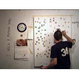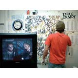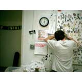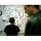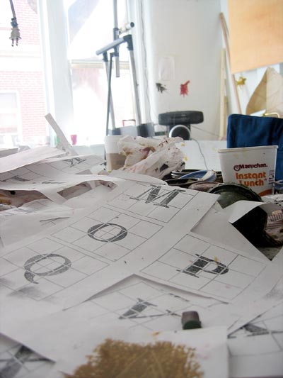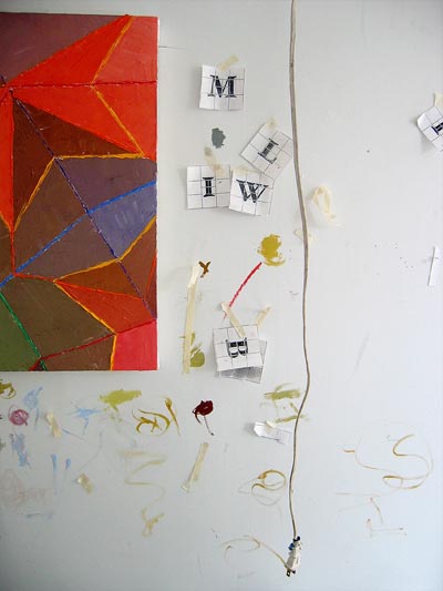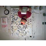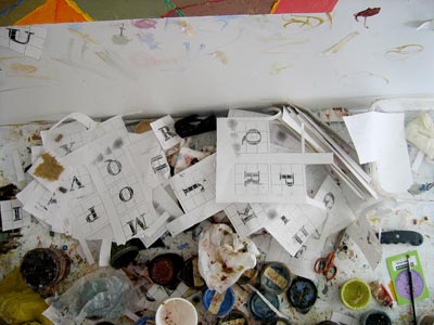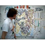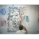 In a heartbeat, this painting is composed of the first page of text from, On The Road by Jack Kerouac. The letters themselves are painted in colors that will make a portrait of Kerouac when seen at a distance. This painting tries to blur the line between "reading" this piece as literature or something to take in visually. In fact, it is both.